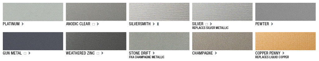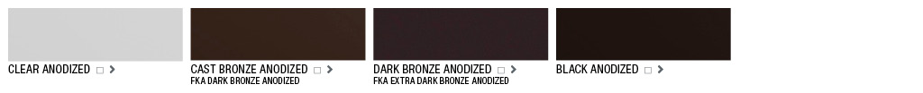 Anodized aluminum. These finishes are chemically and electrically produced (not just an anodic-look paint), and offer an excellent complement to storefont and glazing system extrusions.
